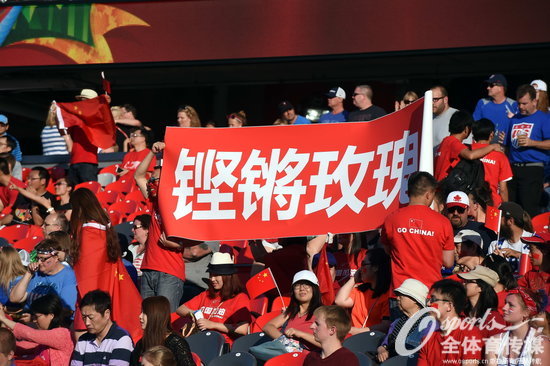 人民網6月27日電 北京時間6月27日7時30分,2015年女足世界杯第2場1/4決賽在渥太華蘭斯當體育場打響,中國隊對陣美國隊。第51分鐘,洛伊德接約翰斯頓助攻頭球破門。最終經過90分鐘的激戰,中國女足0-1不敵對手無緣四強。圖為中國球迷現場助威。