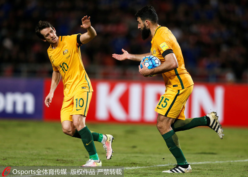 此前袋鼠軍團曾5次參加世界杯預選賽的附加賽,其中隻有一次成功突圍。而本屆比賽,澳大利亞隊一改往日在附加賽的頹勢,順利晉級決賽圈。隊中效力於英超阿斯頓維拉的耶迪納克和老將卡希爾是絕對核心,前者在與洪都拉斯的附加賽次回合比賽中上演帽子戲法幫助球隊順利晉級。