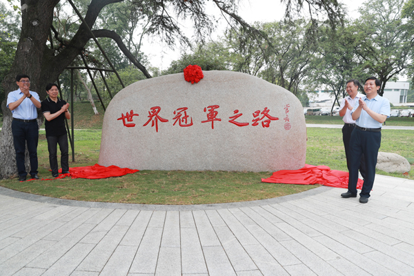 江蘇省政府副秘書長王思源,著名書法家、中國書法院院長管峻,南京體育學院黨委書記朱傳耿、院長楊國慶共同為“世界冠軍之路”路名石揭幕