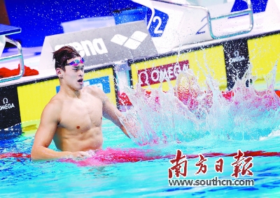夺冠后的孙杨再次兴奋地击打水面庆祝。 新华社发 北京时间25日,布达佩斯游泳世锦赛结束了一场焦点之战。在男子200米自由泳中,孙杨后来居上,以1分44秒39夺冠,创造个人在该项目的最好成绩,并打破了亚洲纪录。继男子400米自由泳后,孙杨获得了本次比赛的第二金,也是个人第9枚世…