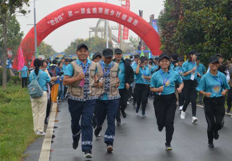 人民网北京9月23日电 9月22日,第三个中国农民丰收节到来之际,全国24支代表队的农民运动员来到镇江世业洲,参加6.5公里的世业杯第一届全国美丽乡村健康跑,随后在水果采收邀请赛中欢聚。