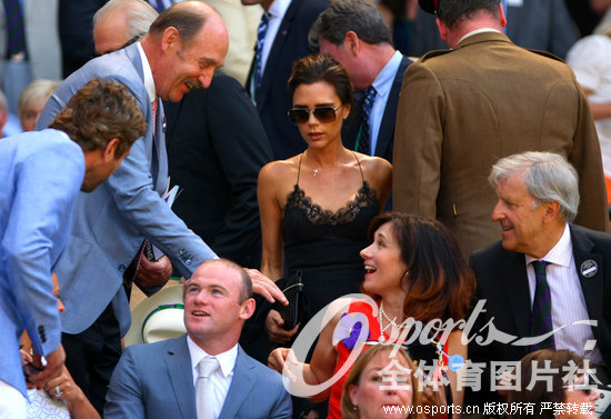 资料图片:2013温网男单决赛 维多利亚场边观战黑超遮面 鲁尼成陪衬