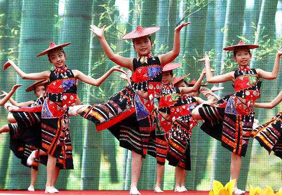 首先上场的是六年级一班。瞧,同学们朝气蓬勃的脸上带着愉悦的笑容,身穿美丽的黎族服装,为大家表演精彩的黎族舞蹈——竹竿舞。“在这动感、欢快的节奏中,在这动人、优美的舞姿里,在这蓝天白云下,在这微风飒爽中,我们看到的,不仅是六年级一班同学为大家倾情带来的演出,更是他们积极向上、热爱生活的精神!”胡凤芹老师说。