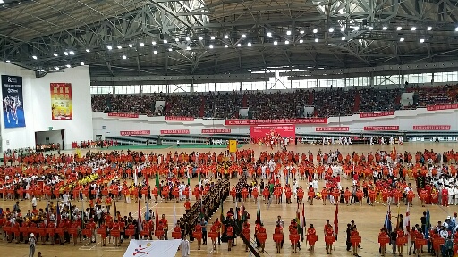 开幕式上,首先进行了2016年北京国际武交会移居莫斯科授旗仪式,由中国武术协会副主席邵世伟向国际功夫联合会副主席兼俄罗斯功夫联合会主席卡美力授旗;接着,由北京市体育局副局长苑振洲致欢迎词,他首先代表组委会向运动员、教练员、裁判员、全体来宾和新闻媒体表示热烈的欢迎,向支持武术发展的社会各界人士表示真挚的感谢。他说,2015北京国际武术文化交流大会是在前四届武交会的基础上举办的,本届大会从赛事组织上更加规范,赛事规模上更加宏大,为来自世界各国与地区的武术爱好者们提供展示精彩武艺的平台。欧洲功夫联合会主席尼克来代表国际友人致辞,他代表欧洲功夫联合会以及全体参赛的国外代表队对本次大会表示热烈祝贺,希望通过这次大会,增进对中国武术的了解。