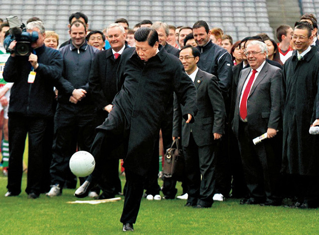 2012年2月,时任国家副主席的习近平访问爱尔兰参观爱尔兰盖尔式运动协会时应邀开球。新华社发
