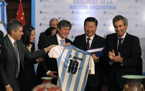 不难发现,体育已经成为习近平总书记外交中一个经常出现的主题。2014年出席中荷经贸合作论坛开幕式,习近平盛赞荷兰队是世界足球的“无冕之王”;出席中法建交50周年纪念大会,他又为刚刚成为中国男足主教练的法国人佩兰送上祝福;在德国,习近平与夫人彭丽媛一同看望了“留洋海外”的中国青少年足球运动员;在阿根廷,他收到了一件印着10号的阿根廷国家队队服,总书记还幽默地问道:“转会费多少?”;去年10月,习近平总书记访英期间参观曼彻斯特城市足球学院,并与英国首相卡梅伦、曼城球星阿圭罗共同拍摄了一张火爆全球的自拍照。