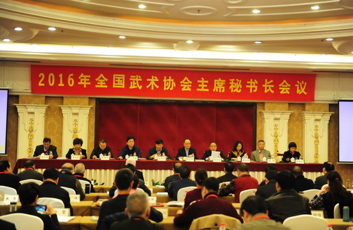 中国武术协会主席张秋平,在题为《科学谋划"十三五",开拓武术新局面》的主报告中,全面回顾了"十二五"时期武术发展情况,对"十三五"时期武术事业发展进行了整体部署和规划。张秋平指出,2016年是实施“十三五”规划的起步之年,也是推进健康中国建设的开局之年,我们要全力做好2016年各项武术工作,认真部署落实好《中国武术发展五年规划(2016-2020)》各项工作目标,起好步、开好局。中国武术协会秘书长陈国荣在会上总结了中国武术协会2015年度工作,并对2016年工作进行了具体安排。
