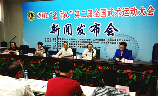 人民网天津8月26日电(记者王霞光)2016年“宏舜杯”第二届全国武术运动大会将于今年9月9日至11日在天津市津南区举行。本届全国武术运动大会的口号是:共筑武术魂 同圆中国梦。