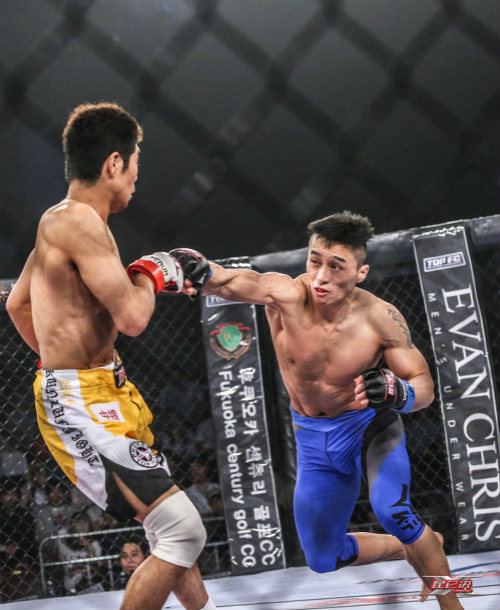 2016年5月22日昆仑决韩国站,3分15秒背后裸绞降服日本拳手智明上山。