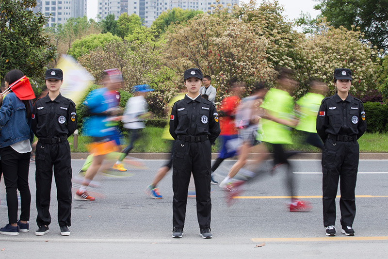 2016年扬州半程马拉松20公里处,三名女性安保人员恪尽职守,默默守护所有跑者,为赛事提供安全保障,让我们为跑者加油鼓劲的同时,也给她们点赞。