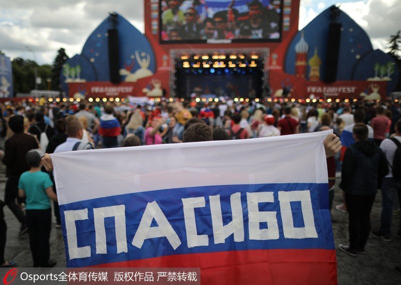 人民网北京7月9日电(欧兴荣 实习生余冰玥)北京时间7月8日,在结束世界杯四分之一决赛后,东道主俄罗斯队于莫斯科举行球迷活动,主帅和球员登台现身,引全场球迷欢呼。此前,俄罗斯队在四分之一决赛中不敌克罗地亚,无缘四强,结束了本届世界杯之旅。但以所有参赛队世界排名最低的身份打到八强赛,俄罗斯队在本届世界杯创造了一个又一个奇迹,也刷新了全世界对其的认知。(Osports全体育传媒专供人民体育 版权作品 严禁转载)