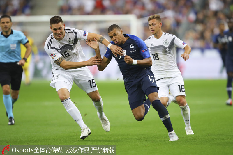 人民网北京10月17日电 北京时间今天凌晨02:45,国家联赛A1组一场焦点战在法兰西球场展开争夺,法国主场2比1力克德国,克罗斯进球,格列兹曼梅开二度反超。法国7分领跑,德国3战仅1分垫底。