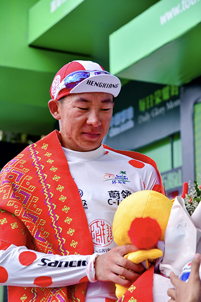 人民网五指山10月28日电(记者胡雪蓉)10月28日,2018环海南岛国际公路自行车赛结束了第六赛段的争夺。来自中国恒祥车队的吕先景大放异彩,在成功保住爬坡王圆点衫的同时,还穿上了象征最佳亚洲车手的蓝衫,这也创造了中国车手在环岛赛上的历史。