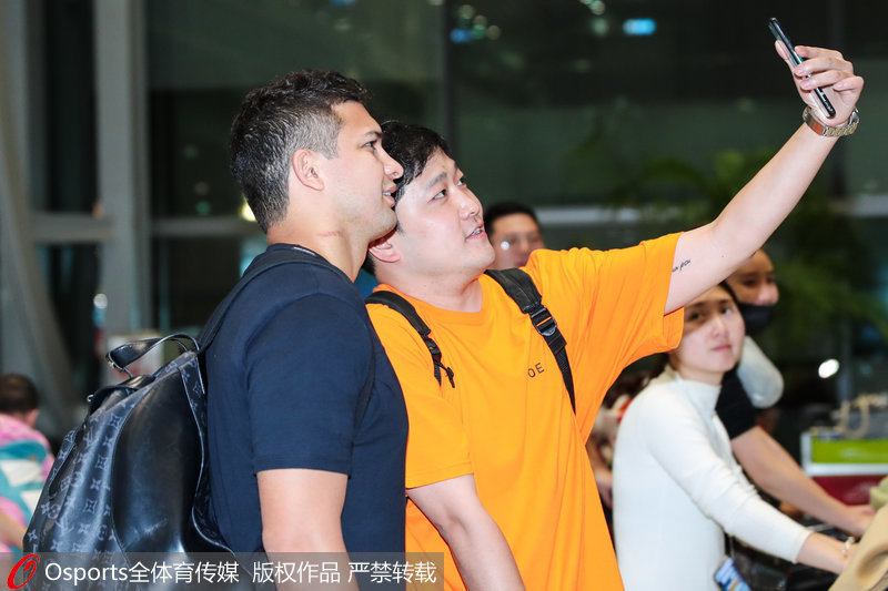 人民网北京9月12日电 世预赛40强赛中国男足首战告捷后,队员已返回国内。首秀归来的艾克森心情大好,双手点赞为球迷签名。