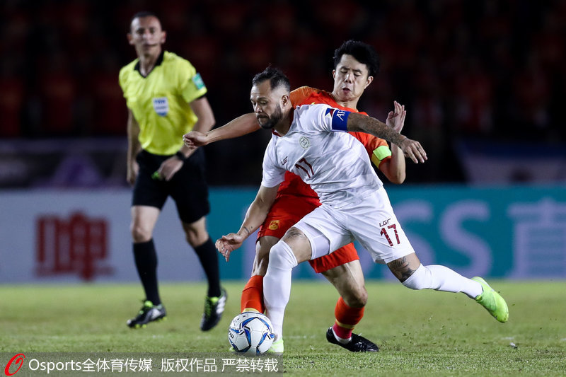 第38分钟,中国队角球攻势被对手化解,菲律宾队迅速形成反击,斯特布勒右翼斜射打偏。