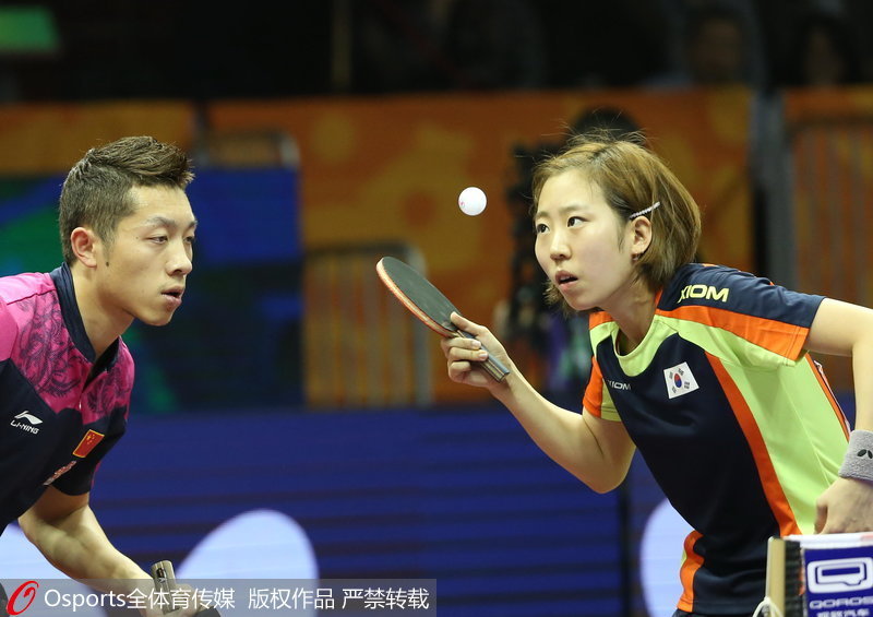 2015年世乒赛,跨国组合许昕/梁夏银(韩国)夺得混双冠军