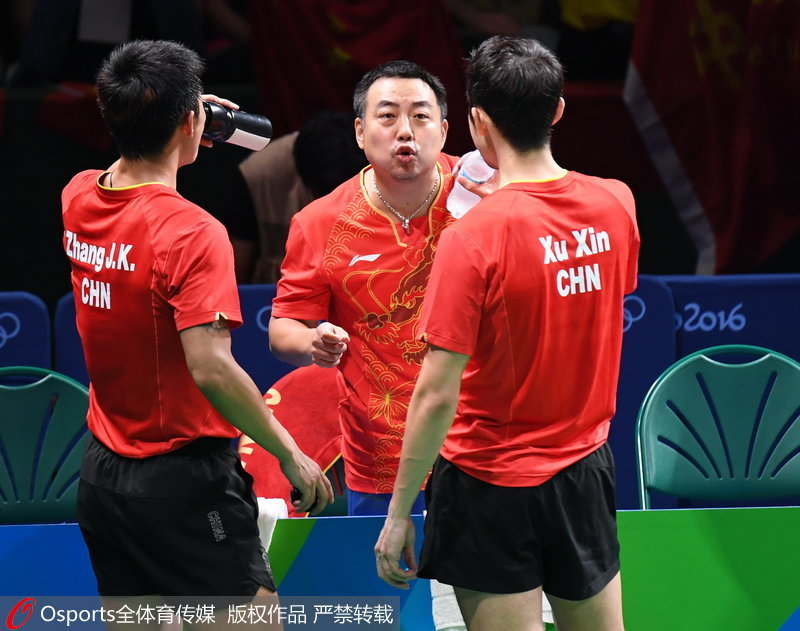 2016年里约奥运会乒乓球男团决赛,刘国梁做场外指导