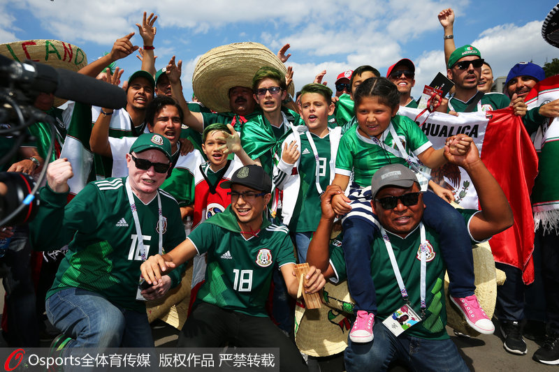 人民網北京6月17日電(楊喬棟 實習生谷思雨)北京時間6月17日晚,世界杯F組第一輪小組賽即將打響,衛冕冠軍德國隊迎戰北美勁旅墨西哥隊。賽前,不少俊男靚女球迷聚集場外給自己喜愛的球隊加油,熱鬧非凡。(Osports全體育傳媒專供人民體育 版權作品 嚴禁轉載)