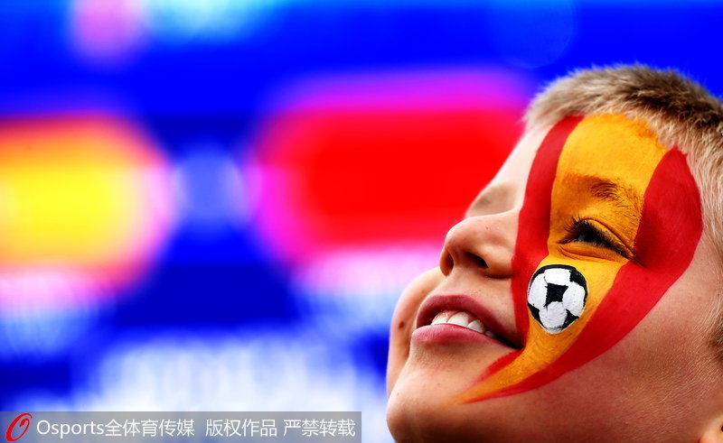 人民網北京6月26日電(楊喬棟 實習生谷思雨)北京時間6月26日凌晨2點,2018年俄羅斯世界杯小組賽第三輪B組比賽即將開賽,西班牙對陣摩洛哥。賽前,有部分球迷做了面部繪畫,為比賽添加更多色彩。此外,也有小球迷一起觀戰,為球隊造勢。(Osports全體育傳媒專供人民體育 版權作品 嚴禁轉載)