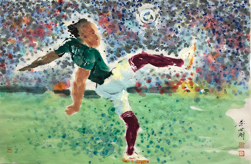 人民網北京7月6日電(歐興榮)2018俄羅斯世界杯已進入淘汰賽階段,8強隊伍全部產生,場上球員為球隊拼盡全力,勝利與失敗交織,張揚與懊惱相伴,一幕幕震撼的場景令人難忘。國內知名畫家、中國美術家協會會員李世剛日前用印象派手法創作了世界杯系列組畫,將賽場上的瞬時激情,用繪畫手法定格,作品光影變幻、色彩絢麗、意境深遠,是藝術與體育的一次美妙交融。